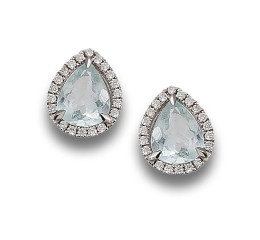 PENDIENTES EN ORO CON AGUAMARINAS Y DIAMANTES