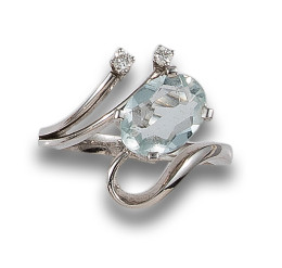 SORTIJA DE AGUAMARINA Y DIAMANTES, EN ORO BLANCO