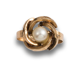 SORTIJA, AÑOS 60, DE PERLA Y ORO AMARILLO