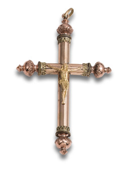 CRUZ COLGANTE PP. S. XX EN ORO, PLATA Y COBRE