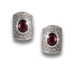PENDIENTES MEDIAS CRIOLLAS DE RUBÍES Y DIAMANTES, EN ORO BLANCO