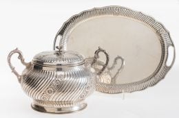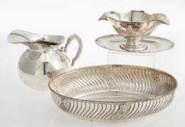 Aguamanil y jofaina en plata española ley 916, punzonada