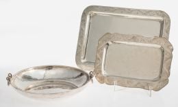 Dos bandejas de plata contrastada ley 925 y 900, S. XX