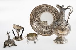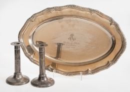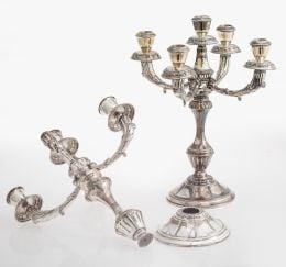 Pareja de candelabros de plata contrastada, S. XIX- XX