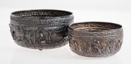 Dos boles de plata contrastada, posiblemente Birmania, S.XX