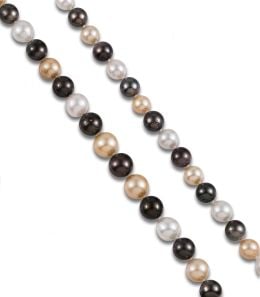 COLLAR ARLEQUÍN EXTRALARGO DE PERLAS, CIERRE DE ORO Y DIAMANTES