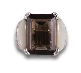 GRAN SORTIJA EN ORO CON CUARZO, MADREPERLA Y DIAMANTES