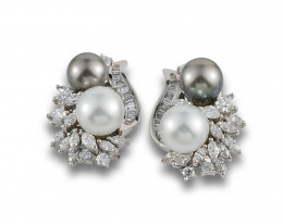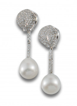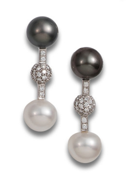 PENDIENTES DE PERLAS TAHITÍ Y AUSTRALIANAS, DIAMANTES, EN ORO BLANCO