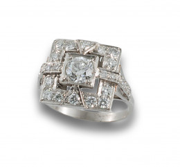 SORTIJA, ESTILO ART DECÓ DE PLATINO Y DIAMANTES