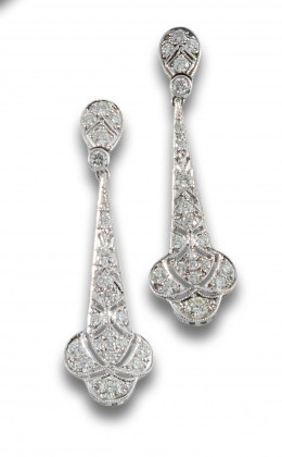 PENDIENTES LARGOS, ESTILO ART DECÓ, DE DIAMANTES Y PLATINO