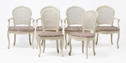 Seis sillas, cuatro de ellas de brazos de estilo Luis XV, España, S. XX