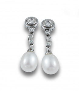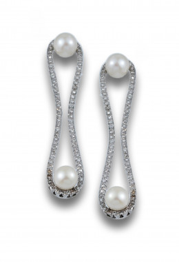 PENDIENTES ANTIGUOS DE DIAMANTES Y PERLAS CULTIVADAS