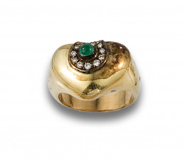 SORTIJA BOMBE DE ORO AMARILLO, DIAMANTES Y ESMERALDA CENTRAL