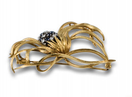 BROCHE FLOR AÑOS 50, DE ORO, DIAMANTES