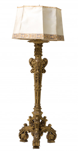 Torchero de madera tallada y dorada de estilo Luis XV, S. XIX..