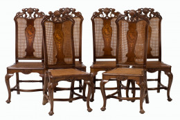 Seis sillas de estilo victoriano de roble tallado, med. S. XX
