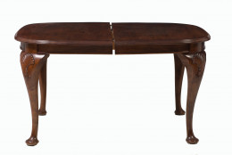 Mesa de comedor de caoba estilo Jorge II con patas cabriolé y veneras talladas, Inglaterra, pps. S. XX. .