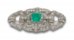 BROCHE ART DECO DE ESMERALDA, DIAMANTES Y PLATINO