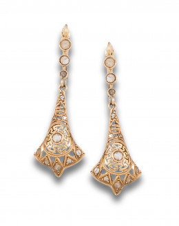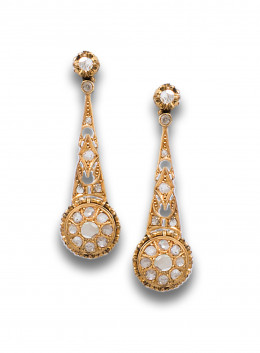 PENDIENTES LARGOS S.XIX, DE ORO AMARILLO CON DIAMANTES