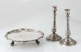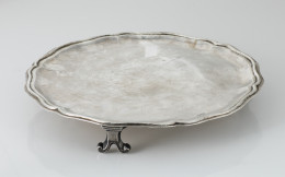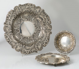Lote de un plato y una salvilla de plata portuguesa, Ley 833, Oporto, 1938