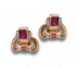 PENDIENTES CHEVALIER DE RUBIES Y DIAMANTES, EN ORO AMARILLO