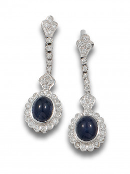 PENDIENTES ART DÉCO EN PLATINO CON DIAMANTES Y CABUJONES DE ZAFIRO