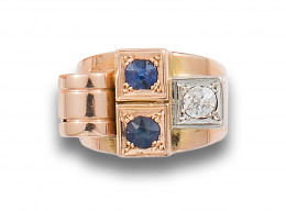 SORTIJA CHEVALIER, AÑOS 40, DE DIAMANTE, ZAFIROS Y ORO ROSA