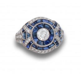 SORTIJA BOMBÉ DE DIAMANTES, ZAFIROS Y PLATINO