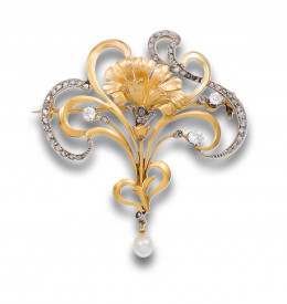 BROCHE ART NOUVEAU DE DIAMANTES, ORO AMARILLO Y PLATINO