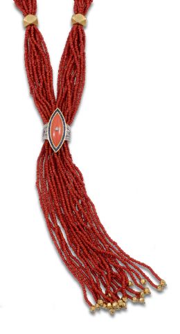 SAUTOIR DE SÍMIL CORAL CON LANZADERA CENTRAL