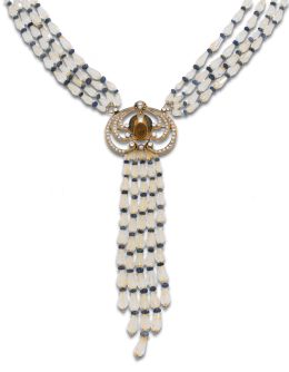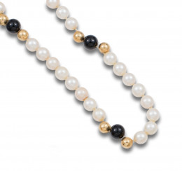 GARGANTILLA DE PERLAS, ORO Y ÓNIX