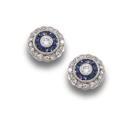 PENDIENTES OJO DE PERDIZ DE DIAMANTES Y ZAFIROS, EN PLATINO