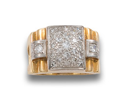 SORTIJA CHEVALIER, AÑOS 40, DE DIAMANTES, EN ORO AMARILLO