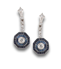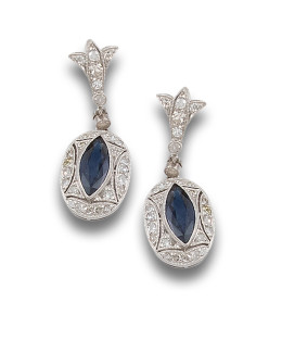 PENDIENTES EN PLATINO ESTILO ART DÉCO CON DIAMANTES Y ZAFIROS