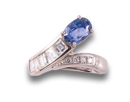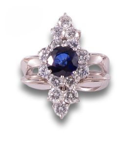 SORTIJA DE ZAFIRO Y DIAMANTES, EN PLATINO