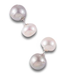 PENDIENTES DOBLES DE PERLAS, EN PLATA