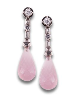 PENDIENTES EN ORO BLANCO Y CUARZO