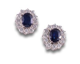 PENDIENTES ROSETONES DE DIAMANTES Y ZAFIROS, EN ORO BLANCO