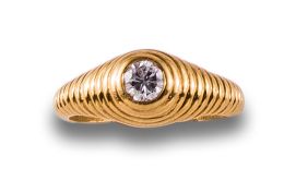SOLITARIO ESTIMADO EN 0.30 EN MONTURA ESTRIADA DE ORO AMARILLO