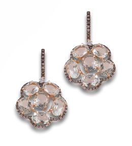 PENDIENTES DESMONTABLES EN ORO CON DIAMANTES Y CUARZOS