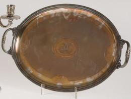 Bandeja rectangular con asas de plata de ley contrastada, Ley 916