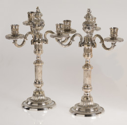 Pareja de candelabros de bronce plateado de gusto Neoclásico