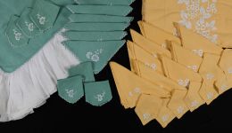 Mantelería de hilo verde con faldón de hilo blanco, S. XX.