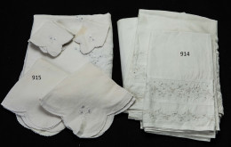 Mantelería de hilo blanco con decoración de flores bordadas blancas y grises