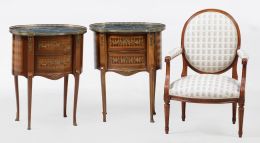 Pareja de mesillas de media luna de estilo Luis XVI, S. XX