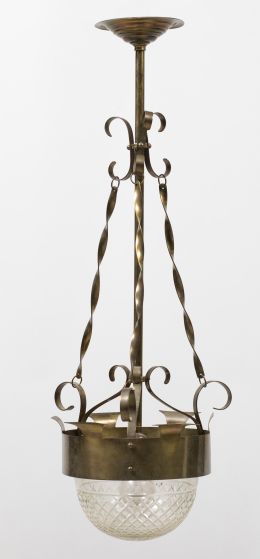 Farol de techo de bronce dorado y cristal, pps. S.XX