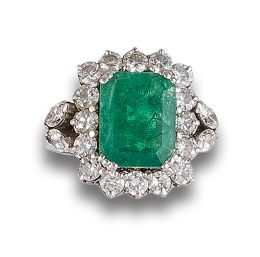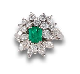 SORTIJA EN PLATINO CON ESMERALDA Y DIAMANTES