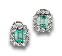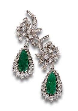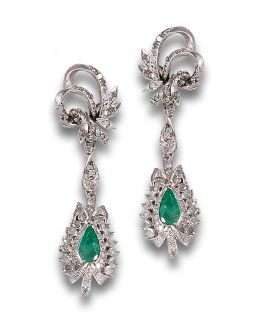 PENDIENTES EN PLATINO CON DIAMANTES Y ESMERALDAS