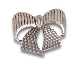 BROCHE LAZO, CA. 1950, EN ORO BLANCO Y DIAMANTES