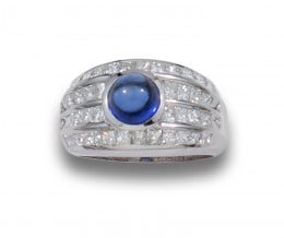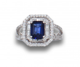 SORTIJA, ESTILO ART DÉCO DE ZAFIRO, DIAMANTES Y ORO BLANCO